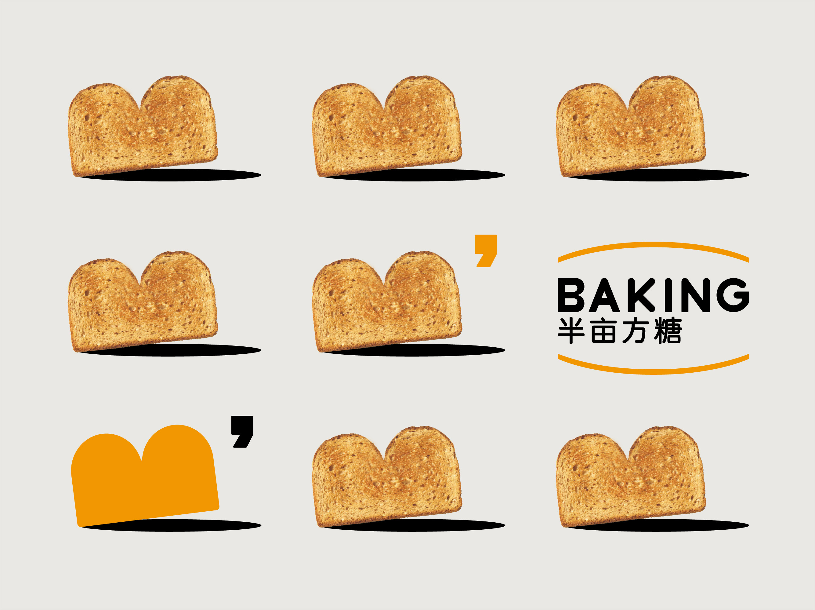 品牌的主要表現(xiàn)形式為MEMORY的英文首字母M,外輪廓就是一塊吐司的形狀,也是烘焙中最簡(jiǎn)單的產(chǎn)物。